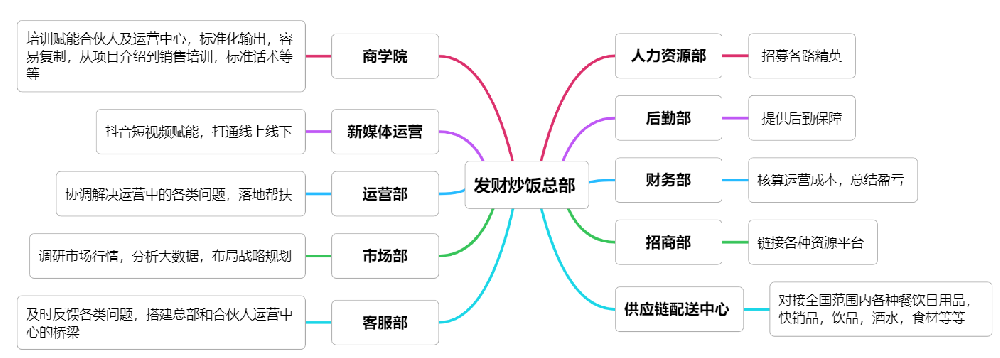 发财炒饭拥有完善且卓越的架构体系,层级清晰,职责分明,具有高度的灵活性和适应性,能够迅速应对市场变化和业务拓展的需求,展现出强大的生命力。